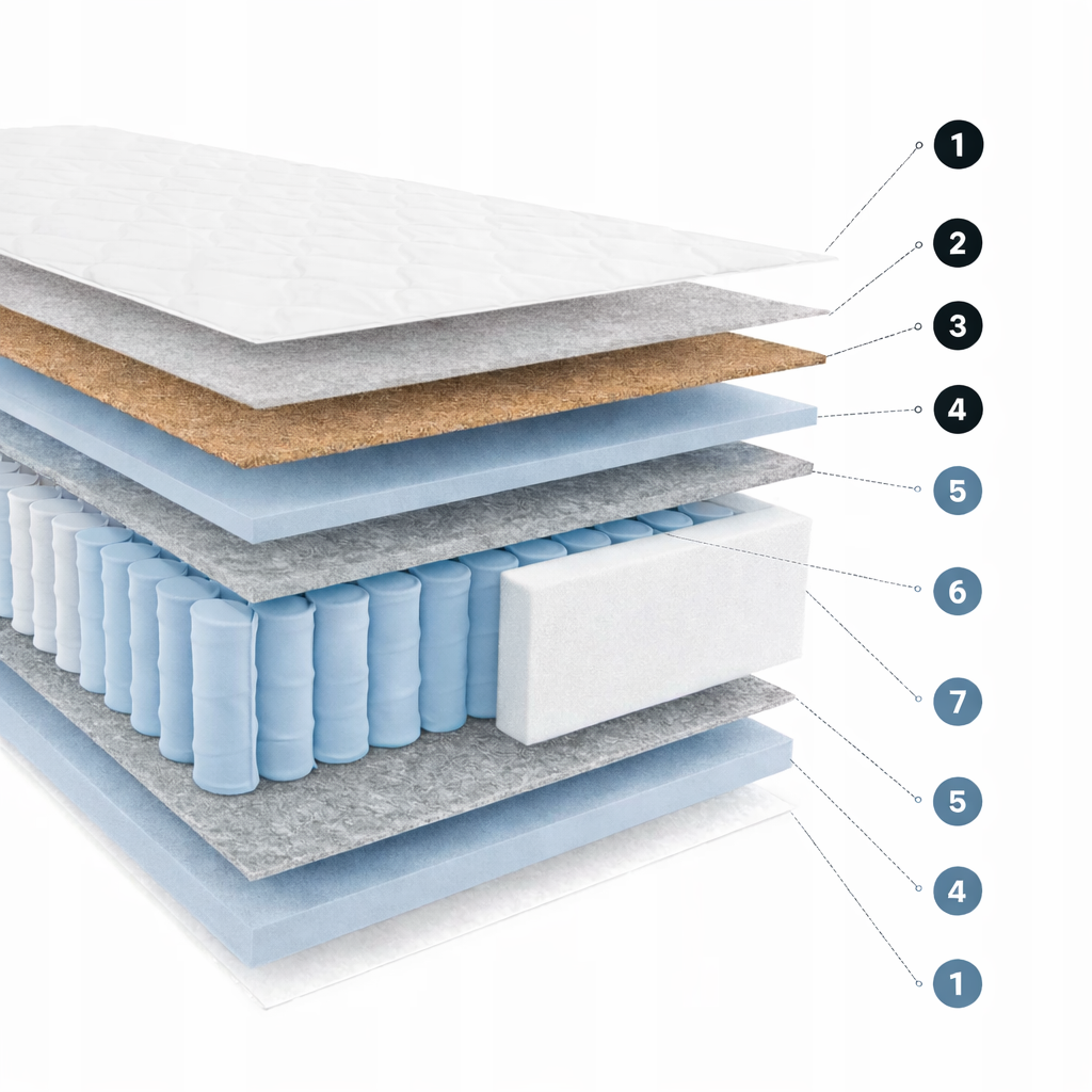 Bij Bedsy selecteren we alleen matrassen die gemaakt zijn van veilige, gecertificeerde materialen. Zo weet je zeker dat alle gebruikte lagen huidvriendelijk zijn en geen allergieën of irritaties veroorzaken. Het Bedsy Comfort Pocket matras beschikt over 7 comfortzones waarin de pocketveren zich aanpassen aan de drukpunten van je lichaam. Dit zorgt voor ondersteuning van hoofd tot voeten, ongeacht je slaaphouding.